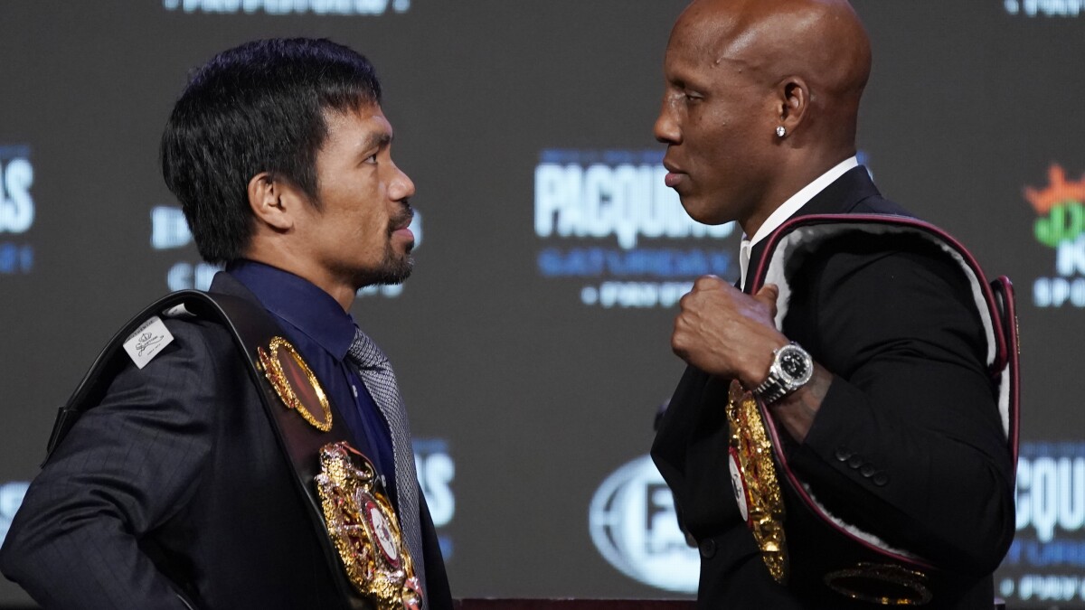 Manny Pacquiao left of the Philippines and Yordenis Ugas of Cuba pose for photographers during a news conference Wednesday Aug. Filipino professional boxer and senator Manny Pacquiao is set to return to the ring to face late. GMA 7 and TV5 see promotional teaser video of the match at 11am on August 22 2021.